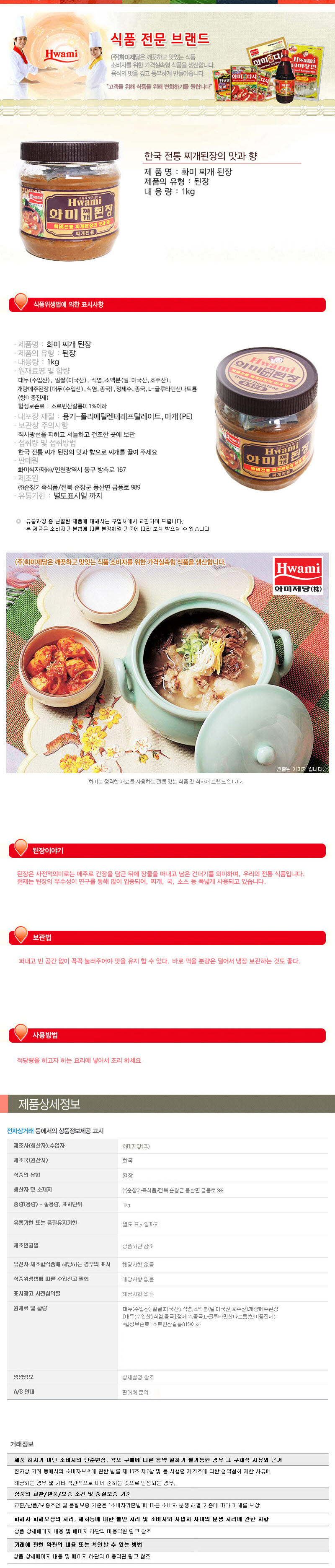 - 원재료명 및 함량대두(수입산),밀쌀(미국산),식염,소맥분(밀:미국산,호주산),개량메주된장[대두(수입산),식염,종국]정제수,종국,L-글루타민산나트륨(향미증진제)*합성보존료:소르빈산칼륨0.1%이하