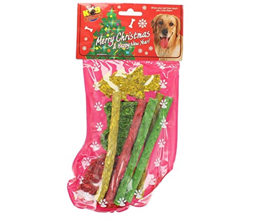 -. Feature : Pre Filled Dog Christmas Stocking / 9 Raw Hide Christmas Shaped Treats / Fresh For Christmas 2017 / Perfect Pet Stocking Stuffer / Ideal For Small To Medium Dogs