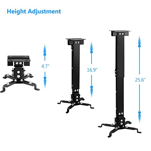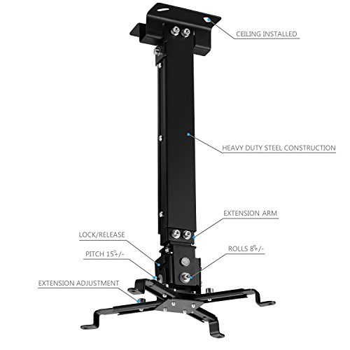 -. Title : WALI WL-PM-001-BLK Universal Projector Flat Ceiling Mount with 25.6-Inch Extension Pole, Black