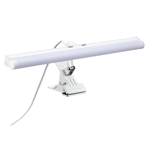 | 仕様 | 光源:白色LED(交換不可) 定格消費電力:5W 色温度:約6500K 光源光束:約825lm 器具光束:約460lm 照度:約900lux(30cm直下) 設計寿命:約40000時間 クリップくわえ幅:平行時約35mm コード長:約1.8m |