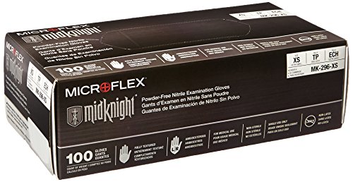 Microflex MK-296-XS MidKnight Powder-Free Examination Glove, 9.6" Length, 3.1" Cuff Thickness, 4.7" Palm Thickness, 5.5" Finger Thickness, X-Small, Black (Pack of 100)