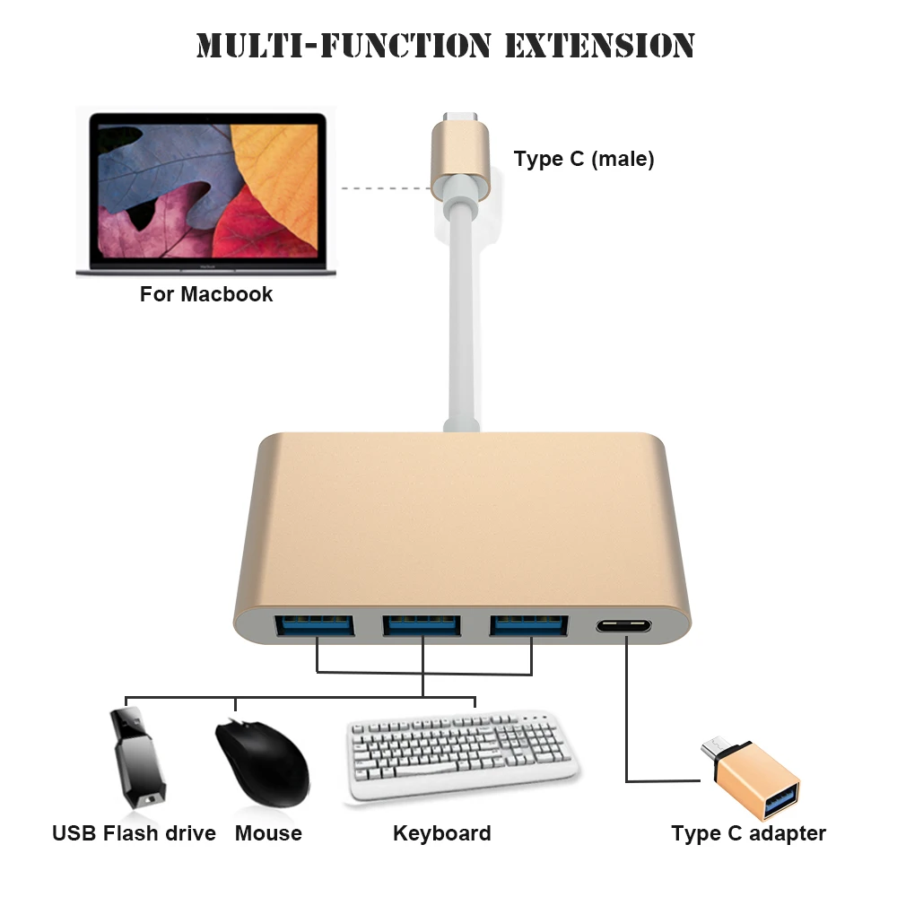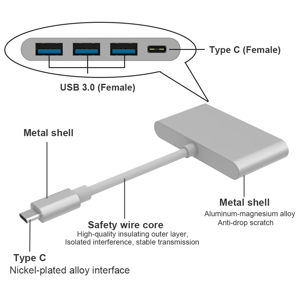 Model Number:4 in 1 Type C to USB 3.0 USB-C Multiport Charging Converter HUB