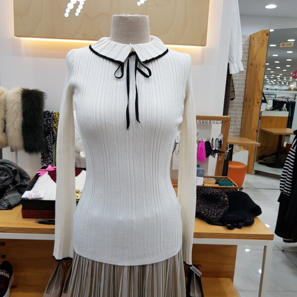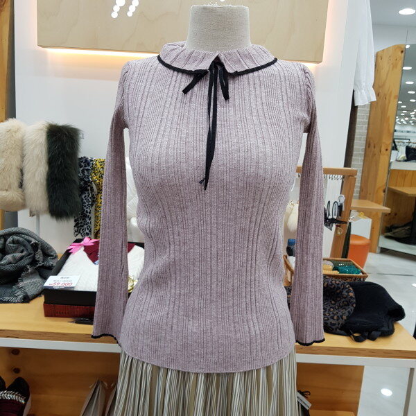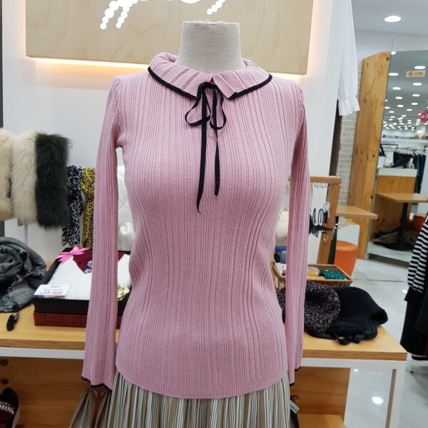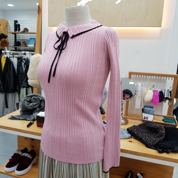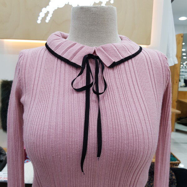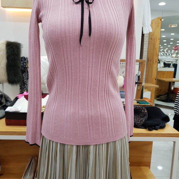슬림형의 골지니트입니다넥부분이 포인트로 리본이 앙증맞은 니트이너로 소장하시기좋은 아이템입니다