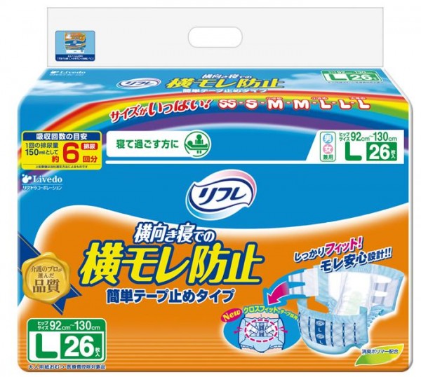 | 素材・材質 | 表面材:ポリオレフィン不織布 吸水材:綿状パルプ/吸水紙/高分子吸収材 防水材:ポリオレフィンフィルム 止着材:ポリプロピレン/ポリエーテル系接着剤/ナイロンなど 伸縮材:ポリウレタン糸 結合材:スチレン系エラストマーなど |
