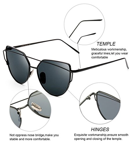 ★ GOOD DESIGN:Sunglasses frame is made of high quality metal material that is durable and strong enough for long time using.The sunglasses is lightweight,no mark on you noses bridge, you will almost not feel the sunglasses in your face.
