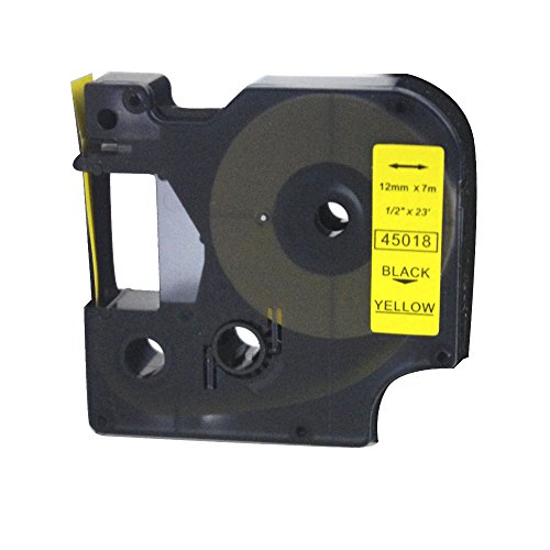 • DYMO 45018 D1 Standard Tape Cartridge for Dymo Label Makers, 1/2in x 23ft, Black on Yellow