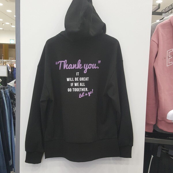 여성 등판 레터링 후드티셔츠 입니다오버핏 으로 밑시보리가 넓게 들어가있으며밑단 트임으로 포인트를 주어 청바지 레깅스 츄리닝 과 매치하여입어도 잘어울립니다.