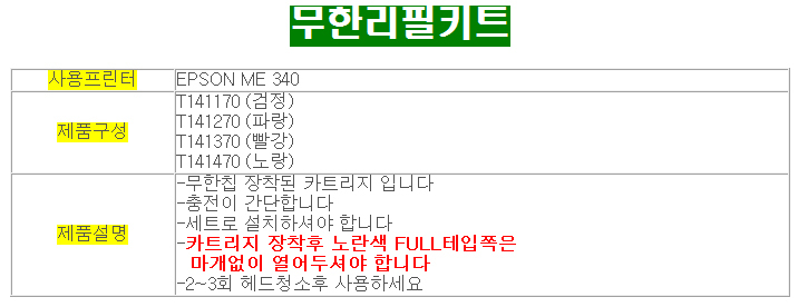Infinite refill kit chip method Epson ME340 T141 empty cartridge