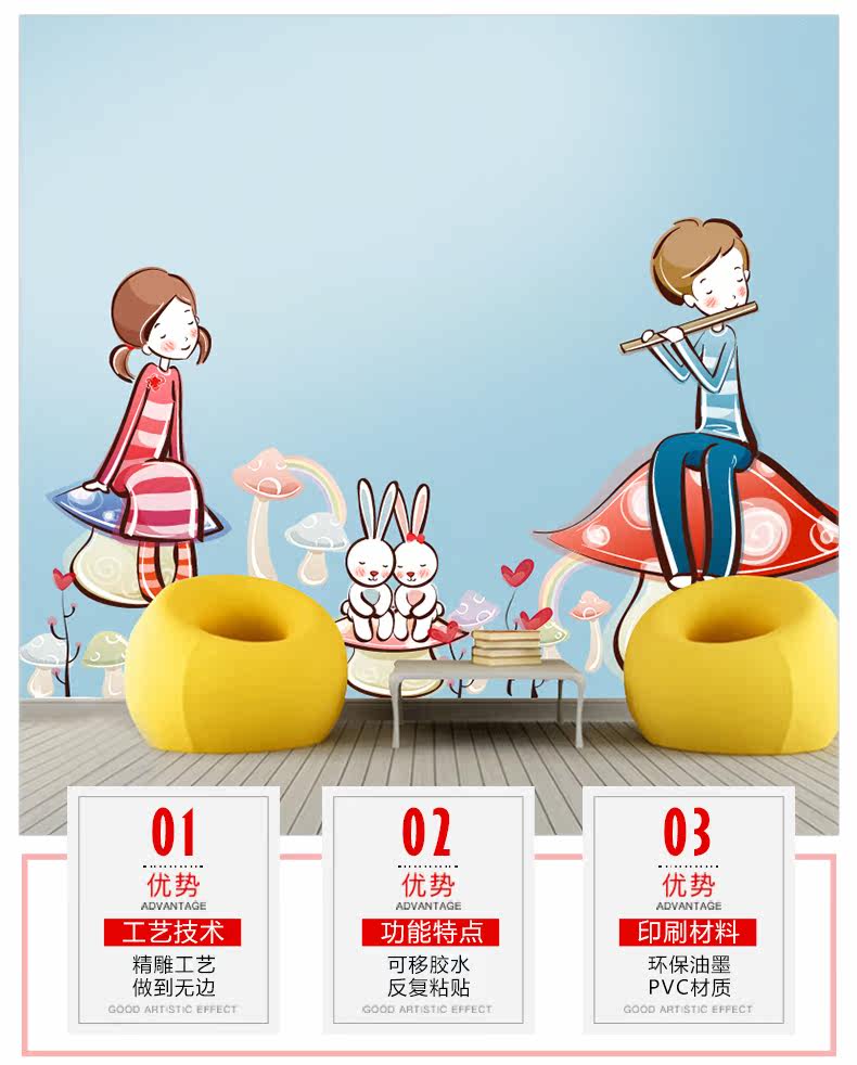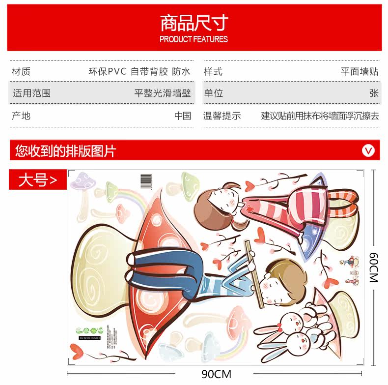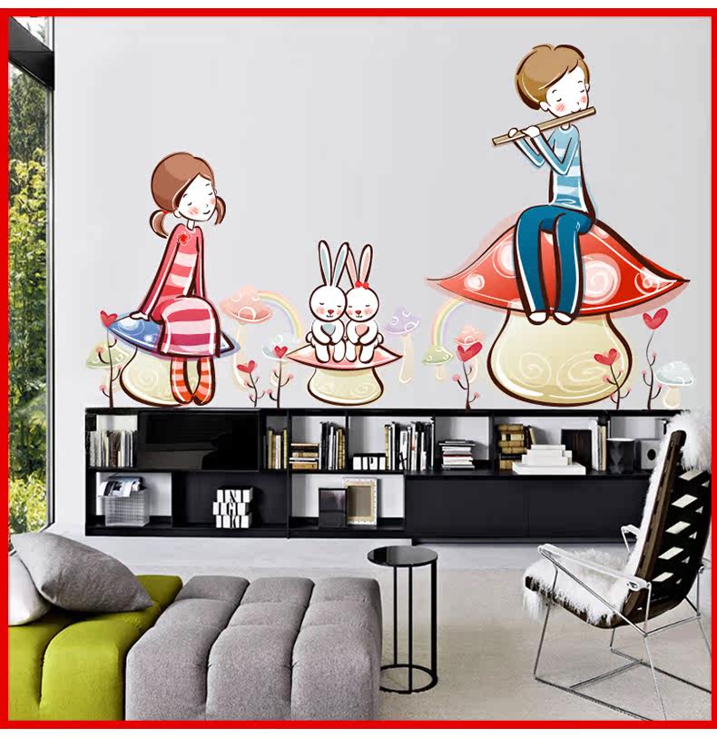 壁纸宿舍大学生儿童房装饰卡通贴画床头墙纸可爱贴纸自粘卧室墙贴