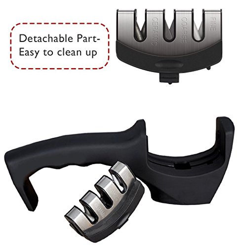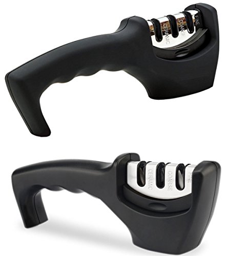 PECHAM Manual Knife Sharpener Professional 3 Stage Sharpening System for Steel and Ceramic Household Kitchen Knives in All Sizes (Black)