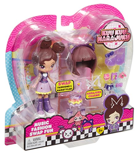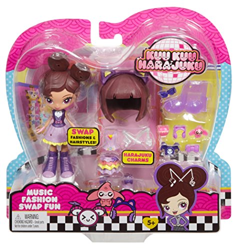 -. Binding : Toy -. Brand : Mattel -. EAN : 0887961455717 -. Feature : New fashion doll inspired by Angel in the Nickelodeon series Kuu Kuu Harajuku / Includes multiple hairpieces, an outfit and a kawaii chic, wearable child-size accessory / Customize your doll and yourself with 4 included Harajuku charms! / Recreate your favorite cartoon scenes! / Collect them all! -. Label : Mattel -. Manufacturer : Mattel -. Model : FCN22 -. MPN : FCN22 -. NumberOfItems : 1 -. PackageQuantity : 1 -. PartNumber : FCN22 -. ProductGroup : Toy -. ProductTypeName : TOYS_AND_GAMES -. Publisher : Mattel -. Studio : Mattel -. Title : Kuu Kuu Harajuku Fashion Swap Fun Music Doll -. UPC : 887961455717 -. Warranty : 1 year warranty against manufacturer defects
