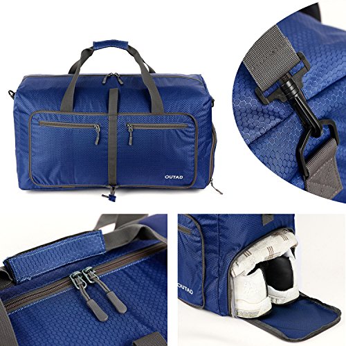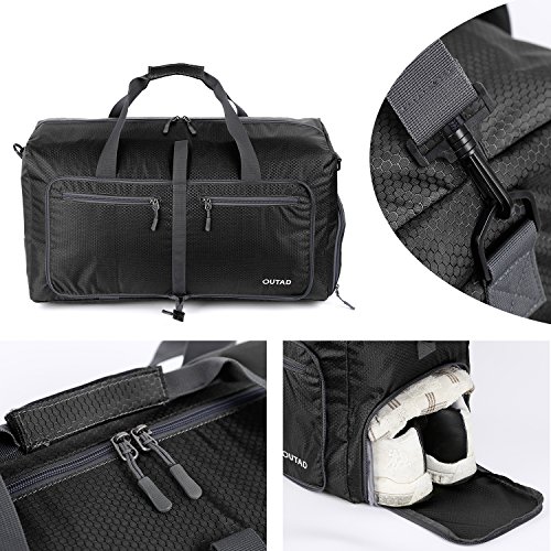 -. Brand : OUTAD -. Feature : Material: 230D ripstop nylon fabric, dustproof and water resistant(NOT waterproof). / Huge Capacity: 13.2gal(50L), unfolded Length x Width x Depth: 22.4" x 9.4" x 12.6" (57 x 24 x 32cm). / Space Saving: Can be folded into 9.4" x 9.4" x 2"(24 x 24 x 5cm), weighs only 12.5oz(355g). / 4 Pockets: 1 spacious main compartment, 2 zippered front pockets and 1 zippered shoe pocket on the side. / Versatile and Durable: It has 2 handle straps with Velcro closure and a detachable shoulder strap(adjustable between 31.5"-63"), when folded up, there¡¯s a wrist carry strap for convenient carry. -. IsAutographed : 0 -. IsMemorabilia : 0 -. Label : OUTAD -. Manufacturer : OUTAD -. MPN : OUTAD29042P -. PartNumber : OUTAD29042P -. ProductGroup : Sports -. ProductTypeName : OUTDOOR_RECREATION_PRODUCT -. Publisher : OUTAD -. Studio : OUTAD -. Title : OUTAD Foldable Travel Sports Duffel Bag, 13.2gal(50L), 12.5 Ounces