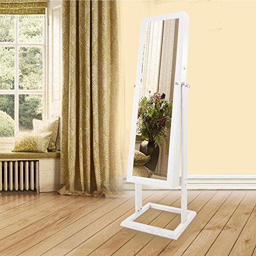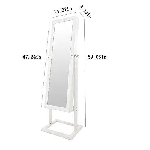 Studio : Bonnlo Publisher : Bonnlo Product Description Bonnlo Mirror Jewelry Armoire Cabinet Holder Organizer Closet,Full Length Mirrored Inside Mirror,Lockable 4 Angle Adjustable Suqare Stand Features: 1. It has a spare mirror inside 2. All of the internal space has a villous render; it feels soft and comfortable, and not easy to damage the ornament place in it 3. The mirror is smooth and real, without distorting mirror effect 4. Four kinds of adjustable angle for you to choose 5. Large Space, with all kinds of hook, meet all your place demands 6. The length of mirror is specially improve designed to teenager, an excellent girl gift for children,teenagers 7. A complimentary key firmly lock the precious items. To ensure the safety of your property Specifications: 1. Main Material: P2 High Density Board PVC Wood Grain Coating High Quality Velvet Silver Mirror 2. Color: White 3. Style: Upright with Small Mirror Inside 4. Weight: 493.84oz / 14000g 5. Dimensions: (59.05 x 14.37 x 3.74)" / (150.00 x 36.50 x 9.50)cm (L x W x H) ? Package Includes: 1 x Jewelry Mirror Cabinet without LED Light 1 x Screw Bag 1 x Manual Maintenance Instructions: Wipe dry with a clean and soft cloth dipped in water, disable containing corrosive cleaner, and avoid sun exposure