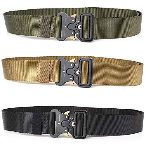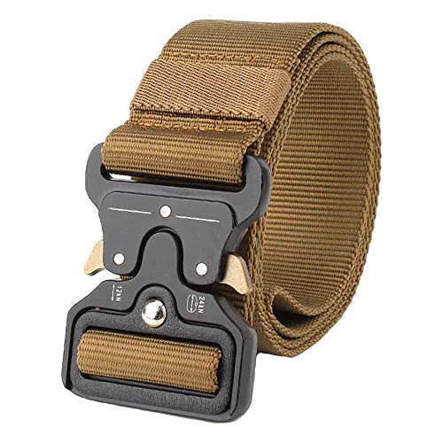 Binding : Apparel Product Description The belt is designed to be worn with most casual or tactical pants. Whether you carry everyday, or just want a solid belt that will withstand abuse without sacrificing comfort, the tactical belt is a perfect choice. Quick release, heavy duty buckle built to last, comfortable and secure.The quick release functionality is intuitive and smooth when you push the two golden tabs down at the same time. If just one tab is engaged, the connection will still hold and fully re-lock on its own. Eco-friendly nylon material: Our belts are made from high quality, 1.5" nylon webbing. Adjustable sizing: allowing for movement of your waistline or for the extra space you need for your daily carry. Buckle note: While we find the belt to work well with some belt loops, most belt loops can be too small to fit the buckle through. In this case, each time you want to take the belt on/off a pair of pants, please remove the male end of the buckle, loop the nylon through the belt loops, then re-install the male buckle. Colors available: Black, Brown, Green. Warranty: 2-year no questions asked warranty and 30-day money back guarantee. Note: The web belt is not made for repelling and climbing applications. 0