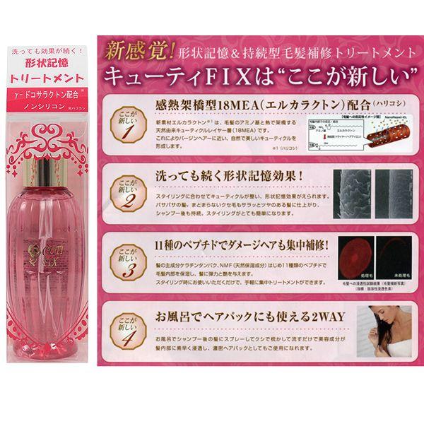 洗っても効果が続く形状記憶トリートメント「キューティフィックス」は、スタインリングと集中補修が1本でできます。