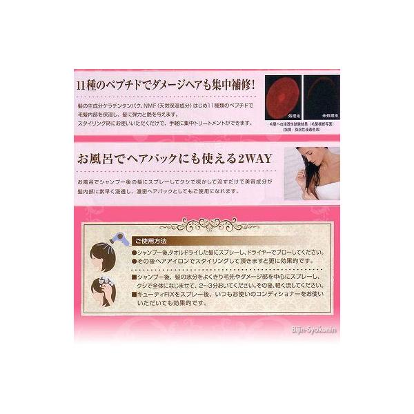 ・キューティFIXをスプレー後、いつもお使いのコンディショナーをお使いいただいても効果的です。