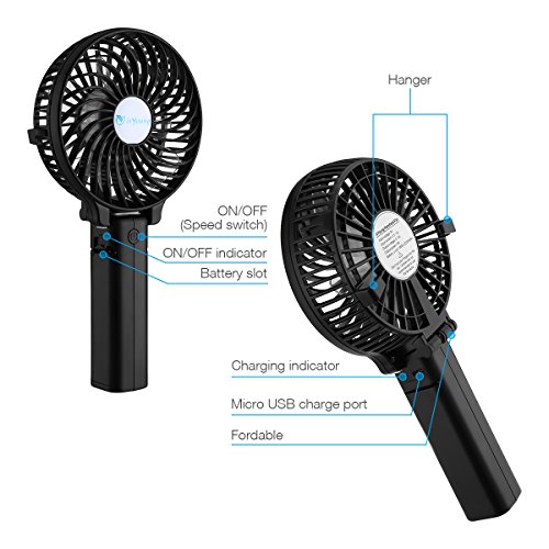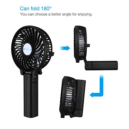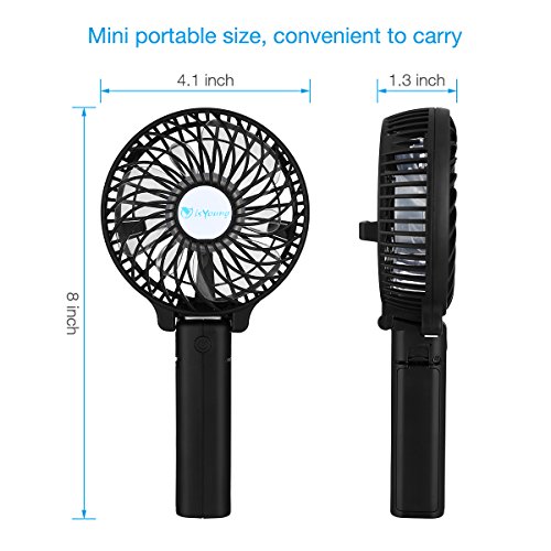 isYoung Handheld Fan: Mini size: 11*8.5*3.7cm, 3 - level speed, quiet and Low noise design, foldable, adjustable 180 degree folding handgrip design. 6pcs fan blades.