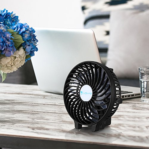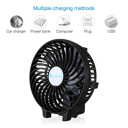 isYoung 3 Speed Rechargeable Mini Fan Portable Air Cooling Fan for Laptop Room Office Outdoor Travel(Black)