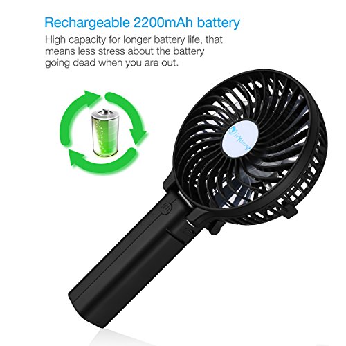 Rechargeable battery: 2200mAh 18650 Li-ion battery. Portable mini fan can be charged by computers, laptops, portable chargers, adapter and other devices with usb output.