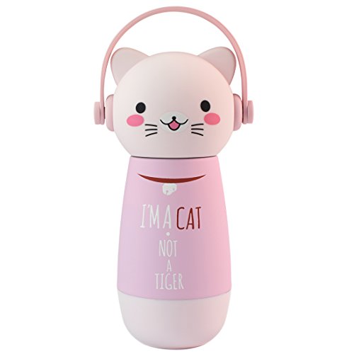 - Cute, unique cat with earphones design water bottle,BPA-free lid and food-grade stainless steel, safe & nontoxic, fully-rugged and won't rust