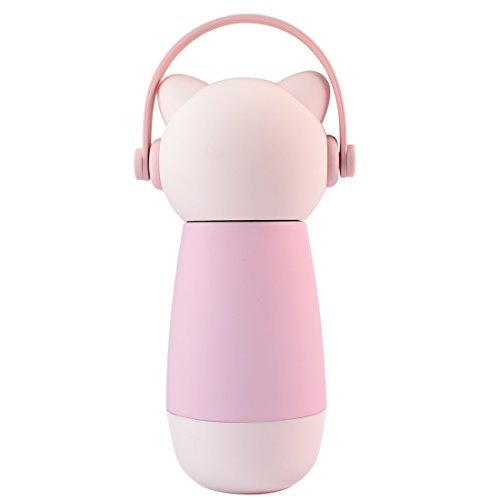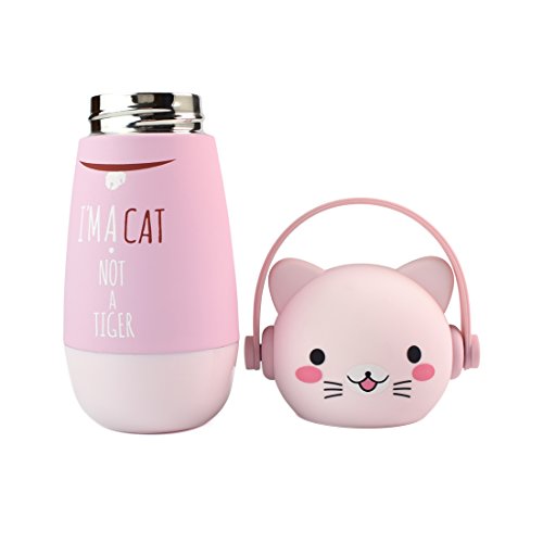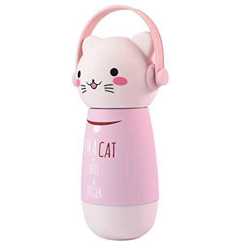 ZIIYAN Portable Stainless Steel Coffee Thermos Cute Cat Travel Mug Drinkware Water Bottle for Kids& Adults, 9oz, Pink