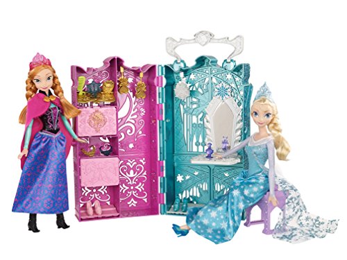 -. Binding : Toy -. Brand : Mattel -. Department : baby-girls -. EAN : 0885175915348 -. Feature : Shimmering carrying case opens up to reveal two closets / Each closet is themed in color and style to Anna or Elsa from the movie Frozen / Girls can clip their Frozen dolls (sold separately) to the sides of the case for on-the-go fashion fun / Includes a vanity for the sisters to share, plus a skirt for each sister and lots of royal accessories for getting ready for any adventure / A great gift that any girl is sure to love -. IsAdultProduct : 0 -. ItemPartNumber : BDK36 -. Label : Mattel - Import (Wire Transfer) -. Manufacturer : Mattel - Import (Wire Transfer) -. Model : BDK36 -. MPN : BDK36 -. PackageQuantity : 1 -. PartNumber : BDK36 -. ProductGroup : Toy -. ProductTypeName : TOYS_AND_GAMES -. Publisher : Mattel - Import (Wire Transfer) -. Studio : Mattel - Import (Wire Transfer) -. Title : Disney Frozen Dual Vanity Playset -. UPC : 746775304041 -. Warranty : No Warranty