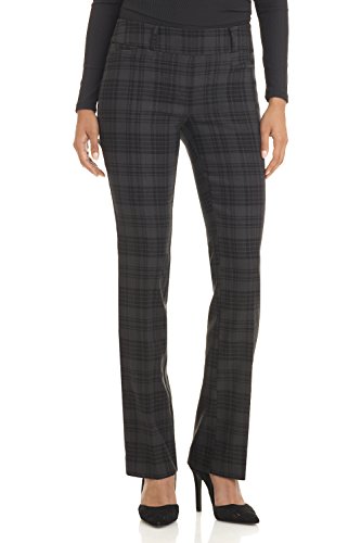 These Rekucci bootcut comfort pants are made of our flattering Nylon,Rayon and Spandex blend fabric. The bootcut leg shape slims the hip and elongates the leg. Our soft comfort waist band is the perfect support for a slimming effect and a smooth silhouette. Enjoy wearing Rekucci!! IMPORTANT* MACHINE WASH IN COLD WATER AND HANG TO DRY TO AVOID SHRINKAGE. REGULAR length 32" Petite 29" Solid Colors: 74% Rayon 22% Nylon 4% Spandex. -Melange Colors: (Charcoal, Dark Charcoal, Indigo, Brown Mix) 48% Polyester 27% Rayon 21%Nylon 4% Spandex