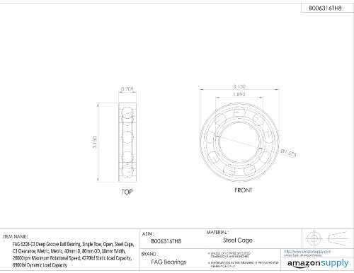 FAG 6208-C3 Deep Groove Ball Bearing, Single Row, Open, Steel Cage, C3 Clearance, Metric, Metric, 40mm ID, 80mm OD, 18mm Width, 20000rpm Maximum Rotational Speed, 4270lbf Static Load Capacity, 6900lbf Dynamic Load Capacity