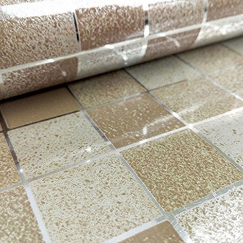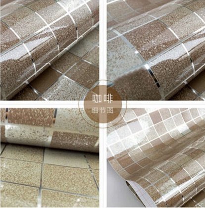 Kitchen PVC Aluminum Foil Self-adhensive Mosaic Stickers Oil Wallpaper Wall Stickers Bathroom Mirror Waterproof Wall Sticker Brown Size 17.3 inches by 157.4 inches (44x400cm)