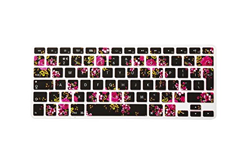 Title : HRH English Letter Silicone Keyboard Cover Skin for MacBook Air 13" MacBook Pro with or without Retina Display 13"15" 17" Apple Wireless Bluetooth Keyboard MC184LL/B European/ISO Layout-Black Flower