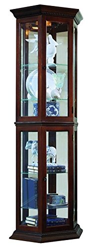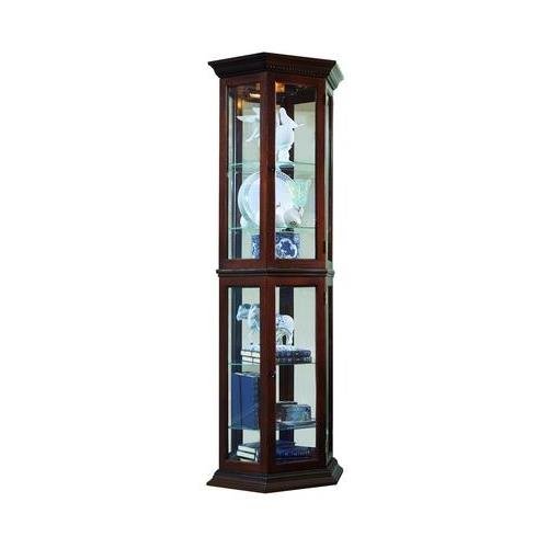 This petite curio has a unique shape with canted sides and big presence with classic moldings and rich brown finish. In a very limited space, you can showcase a collection and still leave plenty of space in the room for regular activities.