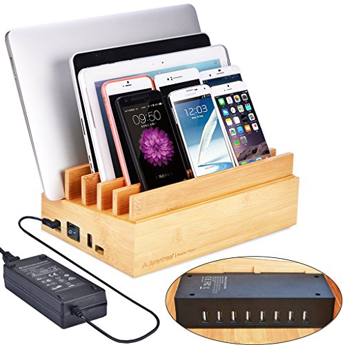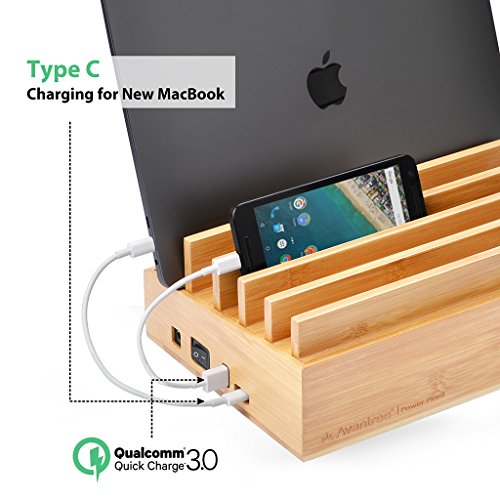 Avantree 100W 10 Ports Quick Charge 3.0 & Type C Bamboo USB Charging Station Organizer for Multi Devices, New MacBook, Tablet, Smart Phones and More [2 Year Warranty]