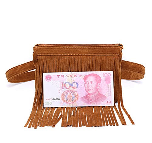 (Badiya)/Accessories/Luggage, Bags Travel/DIRECT FROM USA/Badiya Retro Fringed Nubuck Leather Fashion Small Waist Pack Cellphone Fanny Pack