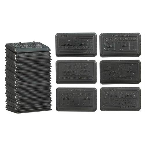 -. Feature : It's the official stand for all of your modern-era Star Wars figures! The Star Wars 3 3/4-Inch Action Figure Base Pack Stands are the same stands that were packed with the 2006 and early 2008 Star Wars basic action figures (figures sold separately), featuring a movie name and two pegs on each stand. / Ages 4 and up. Each pack contains the following 40 stands: 6x Episode I: The Phantom Menace 6x Episode II: Attack of the Clones 7x Episode III: Revenge of the Sith 7x Episode IV: A New Hope 6x Episode V: The Empire Strikes Back 6x Episode VI: Return of the Jedi 2x Expanded Universe Each stand can be personalized with the included character-name label sheet! / You'll find a label for nearly every figure released in the Star Wars action figure line line from 2004 through the end of 2007, with multiple labels for trooper figures. / Buy a bunch - and keep your figures standing tall! / Desk diving will be a thing of the past with a few boxes of these great display bases, which are compatible with nearly every Kenner and Hasbro Star Wars action figure released between 1995 and today.