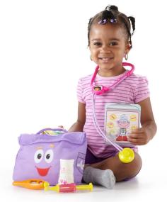 Just like Dora, your little one loves to explore and now they can imagine what it’s like to be a doctor. The Fisher-Price Explorer Check-up Kit includes seven realistic play pieces. Your child can pretend to hear your heartbeat with the stethoscope and take your temperature with the sick-to-well thermometer. Simply spin the dial on the end of the thermometer to see a smiley or a sad face appear. The blood pressure monitor features a cuff big enough to fit most adults and features a squeeze pump and a spinning dial. Little doctors can pretend to give a get-well shot and make boo-boos all better with the cuff-style bandage. There’s even a Boots check-up chart included too! House calls are no problem because everything stores inside soft-cloth Backpack.