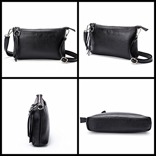 Product Description This leather clutch purse wallet is made of high-quality genuine leather. The women leather crossbody bags features long leather tassel zipper pull, gold-tone hardware. It can carry your cell phones, glasses, cosmetics, comb, wallet and so on. This casual purse can be use as Shoulder Purse, Crossbody bag or Clutch evening bag, perfect for women teen girls' use as travel purse, hiking bag and other uses.