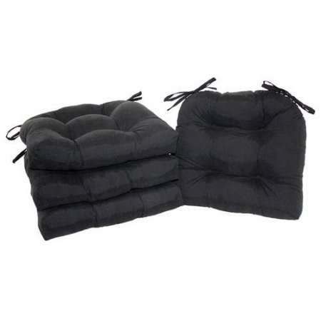 -. Title : Faux Suede Chair Pad with Ties, Set of 4, Rich Black Colors, 14.5" x 16"