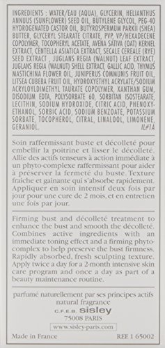 An intensive firming and toning treatment for bust and decollete. Features a fresh, sculpting texture that dissolves quickly into skin. Contains Oat Seed extract to smooth decollete and immediately firm up breasts. Blended with Phyto-Complex featuring extracts of Centella Asiatica and Walnut Tree. Helps improve skin elasticity and firmness. Loaded with rye extract to optimize mechanical resistance of the dermis. Infused with Shea butter, Sunflower oil and Glycerin of vegetable origin. Delivers an instant boost of moisture and nutrition. Reveals a more toned bust and more sculpted breasts.Feature