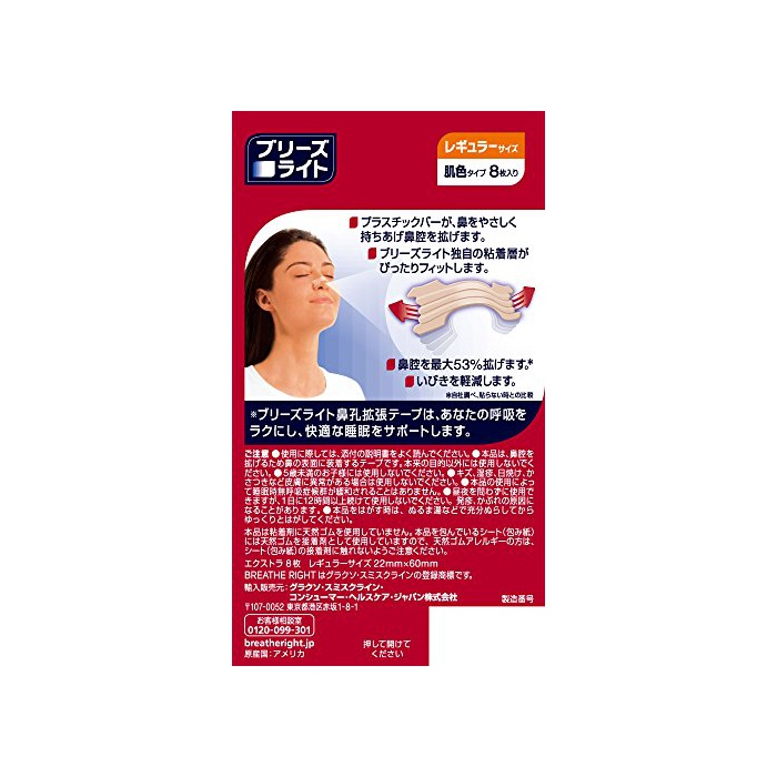 원본상품명: ブリ?ズライト エクストラ 肌色 レギュラ?鼻孔?張テ?プ 快眠いびき?減 8枚入