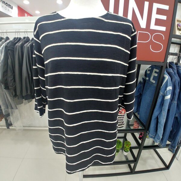 깔끔한 가로 스트라이프로 넉넉한 핏과 세련된 컬러감으로 데일리로 입으시기 좋은 아이템입니다