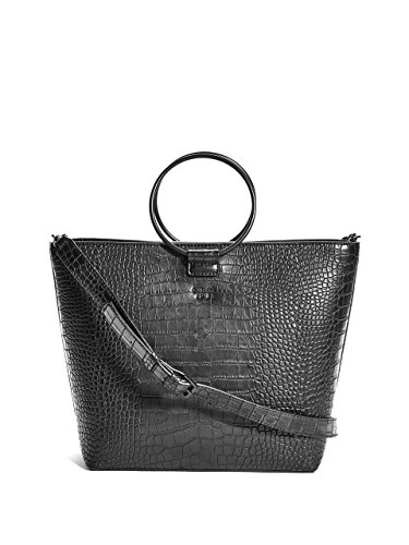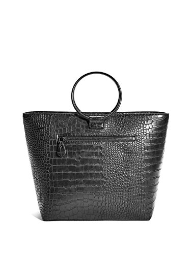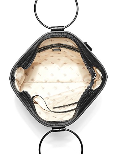 A black faux-snakeskin design with dual O-ring top handles make this trendy satchel perfect for pumping up your everyday style. Features removable shoulder strap and an exterior zipper pocket. Interior zipper pocket and multifunctional slip pockets. Top zipper closure.Feature
