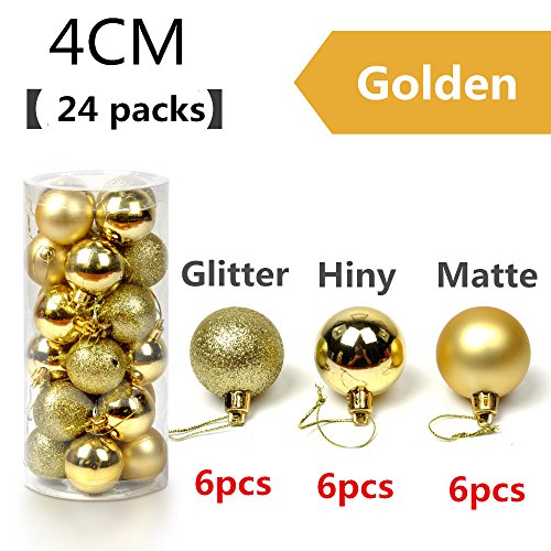 AUSUKY 24pcs 4cm Christmas Tree Xmas Multicolor Round Balls Decorations Baubles for Party Wedding Ornament (Golden)