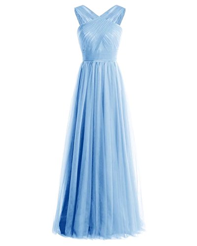 | (Lilibridal)/Accessories/Luggage, Bags Travel/DIRECT FROM USA/Long Tulle Ruched Evening Dress Sleeveless V-neck Party Dress LLB182 |