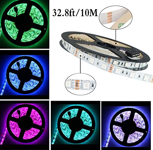 SJP Light®10m/32.8FT 24V LED Strip Light,5050 SMD 300leds RGB IP65 Waterproof Color Changing Flexible LED Light Strip Rope Light Decorative LED Lighting for Decoration (Non-Waterproof 300leds)