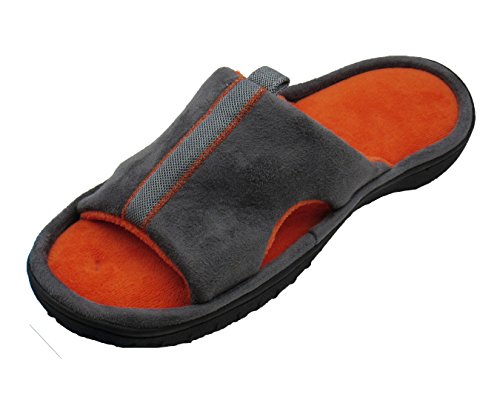 -. Title : Isotoner Men's Classic Open Toe Slippers (Grey/Orange)