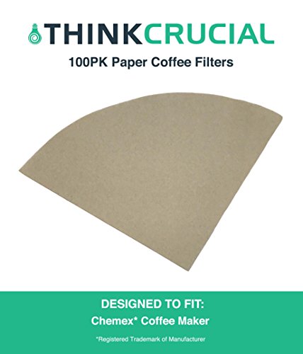 100PK Replacement Unbleached Paper Coffee Filters For Chemex 6, 8 & 10 Cup Chemex Coffee Makers, by Think Crucial