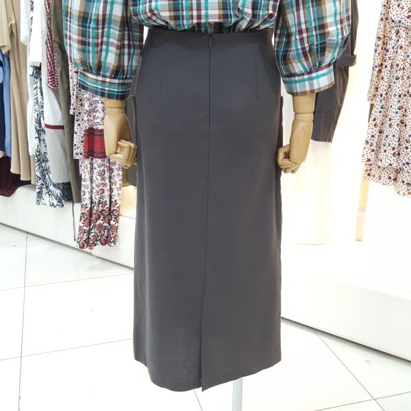 미니멈룩한 심플한 디자인으로 깔끔하고 라인을 살려 전체적인 핏이 예쁜 제품입니다.뒷단트임이 살짝 들어가 활동하시기에 편하며 전면 랩스커트처럼언발란스함이 가미되어 매력적이고 세련된 롱스커트입니다.