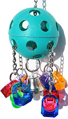 -. Feature : Great for small to medium birds / Measuring about 3 inches wide and about 9 inches high / A fun tug-o-war toy. / Brightly colored acrylic rings and pacifiers. / Easy to clean construction