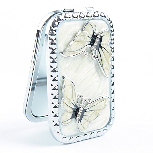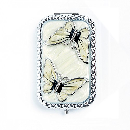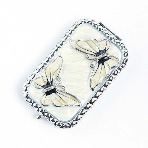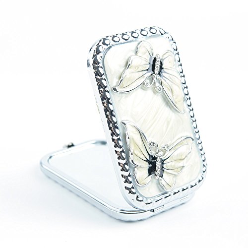 High Quality Pocket Mirror: Made of metal. Hand-painted with superb craftsmanship.Couple of butterflies, white oil painting. pretty and perfect as gift for girls.