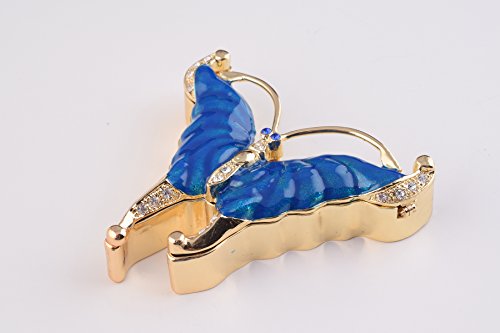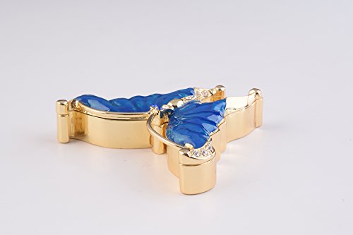 Golden Blue Butterfly Trinket Box Decorated with Swarovski Crystals